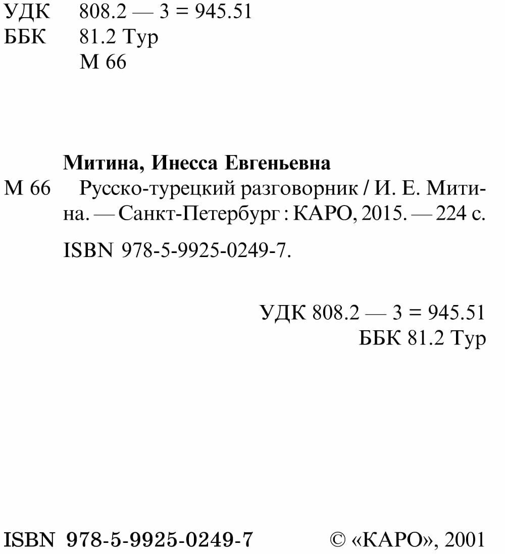 Русско-турецкий разговорник (И.С. Митина); КАРО, 2002