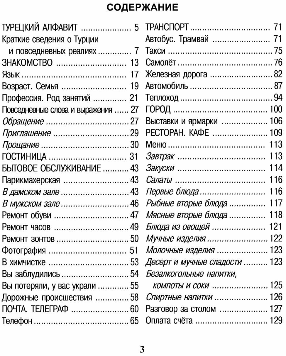 Для разговорника – хорошая книга! Я начинала изучать турецкий на одном английском сайте в виде подкастов, видео и письменных диалогов. Соответственно, произношение и часть грамматики уже освоила. Разговорник решила приобрести, чтобы выучить за короткий срок самые важные фразы, которые могут понадобиться в путешествии. С выбором не ошиблась. В начале книги рассказано совсем немного об истории и культуре Турции (только самые важные моменты), а затем до самого конца следуют фразы, написанные в трёх столбцах – на русском, турецком (перевод) и снова русском (произношение). В начале также есть алфавит с произношением. Если вы уже имели возможность послушать правильную турецкую речь, то этот разговорник вам очень пригодится, так как поможет освоить большое количество фраз, необходимых для жизни. Если же вы будете опираться на то произношение, что дано в книге, то высока вероятность того, что заучите фразы с ошибками. В любом случае, книга достойная, мне понравилась. В ней всё по делу, «воды» нет совсем. Единственный минус – это иногда встречающиеся опечатки в турецких словах.