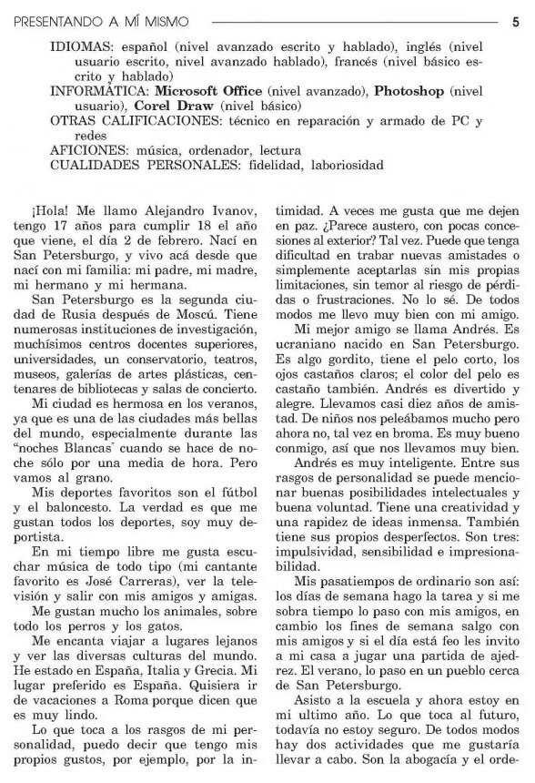 Данный сборник предназначен для абитуриентов, учащихся средних образовательных школ и школ с углубленным изучением испанского языка, людей, занимающихся испанским языком на курсах и самостоятельно, а также для всех тех, кто интересуется языком и культурой Испании. Кроме того, он может быть с успехом использован студентами младших курсов в процессе подготовки устных тем на занятиях по разговорной практике и страноведению.
