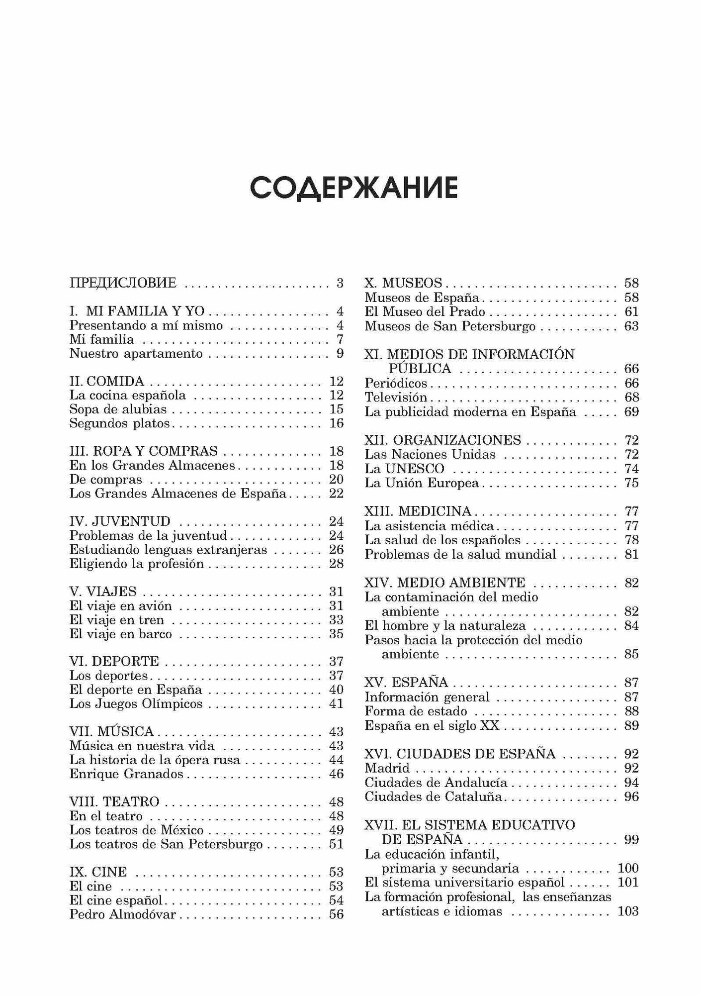 Отличная книга! Купила на днях эту книгу, так как по сравнению с аналогичными сборниками тем по испанскому языку стоит дешевле, а по содержательности ничуть не хуже. Очень удобно структурированное оглавление. Книга имеет 25 разделов. В каждом разделе по несколько топиков. Для изучающих испанский и любителей путешествовать – это настоящая находка! Помимо стандартных тем: «Моя семья», «Дом», «Школа»", «Медицина», «Шоппинг», «Спорт» книга включает в себя много страноведческого материала: культура, литература, живопись, музеи, кино, кухня Испании (с рецептами некоторых блюд), города Испании, выдающиеся люди и т.д. После каждой темы есть список новых слов и идиоматических выражений, которые были использованы в тексте, а также вопросы на понимание текста. К данной книге имеется ещё аудиоприложение в формате mp3, что очень способствует улучшению восприятия испанской речи на слух. Да и не всегда есть возможность сидеть за книгой, чаще использую аудио, которое можно слушать, когда нахожусь в дороге. Однозначно рекомендую.