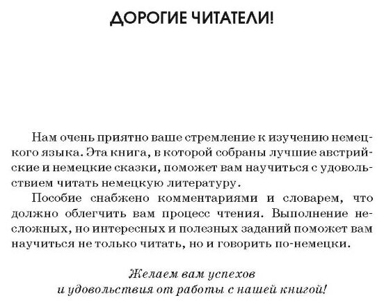 Книга для изучающих немецкий язык со множеством поучительных и занимательных сказок, материал усваивается гораздо легче при чтении интересных сказок! Присутствуют творческие задания и упражнения. Изучаю немецкий язык самостоятельно, всегда выбираю материалы, которые интересные по содержанию. Эта книга мне очень понравилась. В конце приведен словарь.