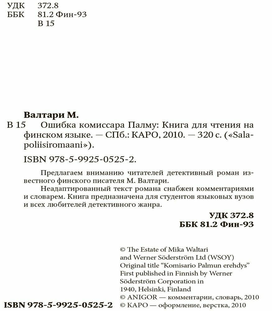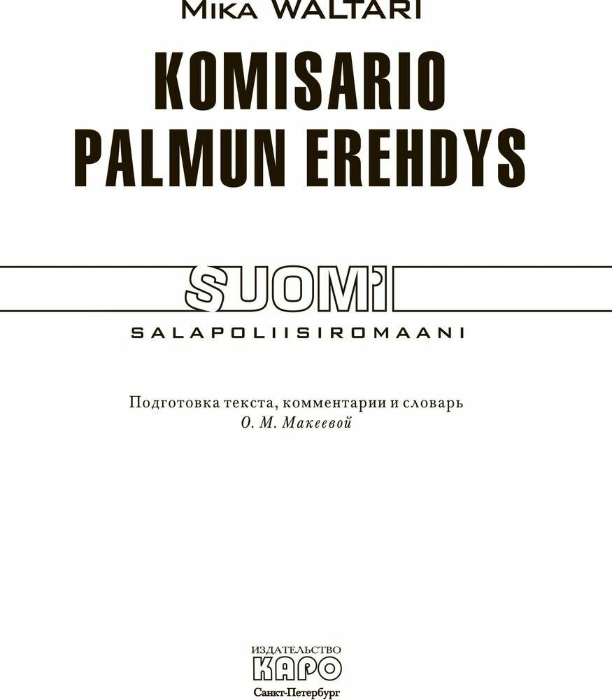 Ошибка комиссара Палму: Книга для чтения на финском языке. (Мика Валтари); КАРО, 2010