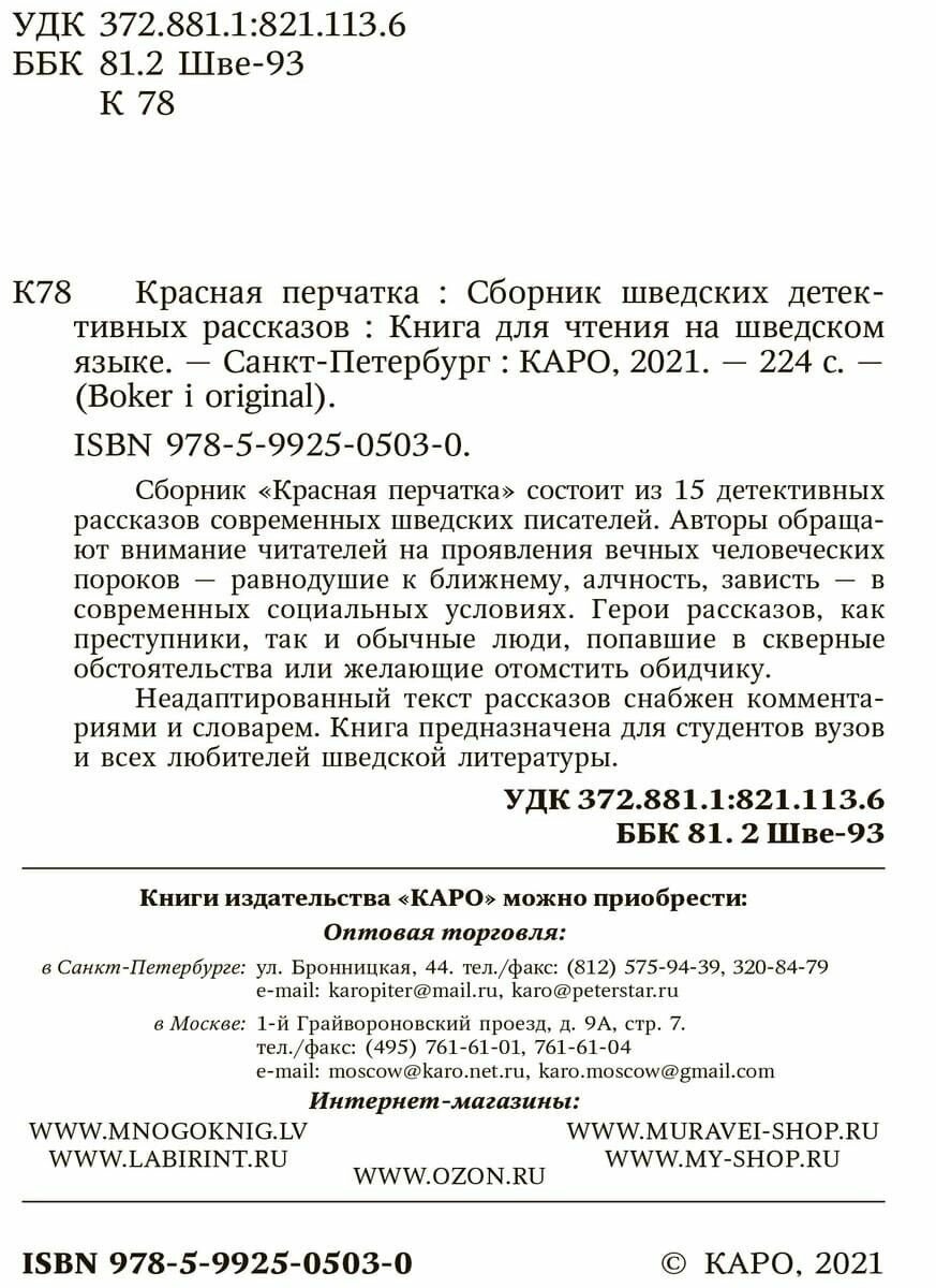 Сервис сравнения цен СкидкаГИД предлагает сравнить цены на товар «Книга: Красная перчатка. Сборник шведских детективных рассказов / Den Roda Vanten. Och Andra Deckare (Жукова Нина Ипполитовна); КАРО, 2020»