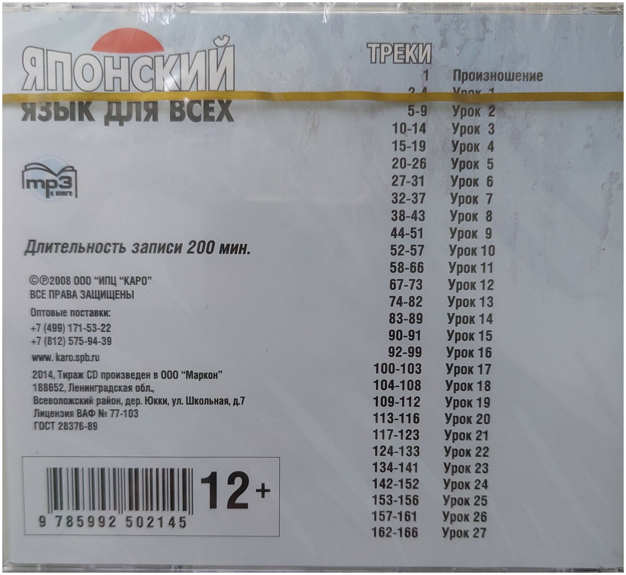 Все диалоги, тексты для аудирования и упражнения на понимание текста записаны на компакт-диск, что позволяет студентам слушать живую японскую речь, совершенствовать свое произношение и приобретать навыки детального понимания прослушанного материала.