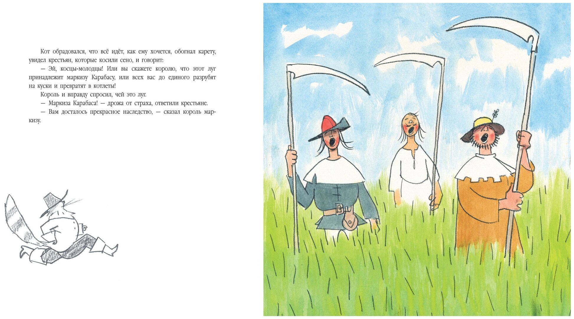 Yucca, меня тоже смутила фраза про жадных судей, "чужеродной" какой-то показалась. У нас сохранилась книга 1979 года издательства "Детская литература" в пересказе М. Булатова, про судей там нет ни слова: "Один мельник оставил трем сыновьям небольшое наследство-мельницу, осла и кота. Братья сразу же поделили отцовское наследство: старший взял себе мельницу, средний-осла, а младшему дали кота." Еще из покоробивших моментов: в переводе В. Берестова: "Эй, косцы-молодцы! Или вы скажете королю,что этот луг принадлежит маркизу Карабасу, или всех вас до единого разрубят на куски и превратят в котлеты!" В пересказе М. Булатова: "Эй, косари! Если вы не скажете королю, что этот луг принадлежит маркизу Карабасу, всех вас немедленно изрубят в мелкие кусочки!". Перевод Берестова, наверняка, более точен, чем пересказ Булатова, но все-таки упоминание про котлеты тут явно лишнее, для детей дошкольного возраста книга.