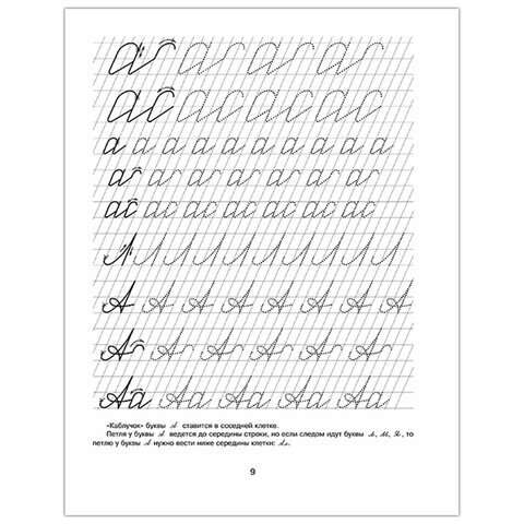 Очень солидная и хорошая пропись на отличной бумаге напомнила мне первый класс. Сколько было сделано ошибок, которые трудно было исправить! Теперь черновики не понадобятся, т.к. автор даёт рекомендации по использованию дополнительных приспособлений. Значки крупные, поэтому заниматься будет легко. Внизу каждой страницы даются рекомендации по написанию букв и их частей.