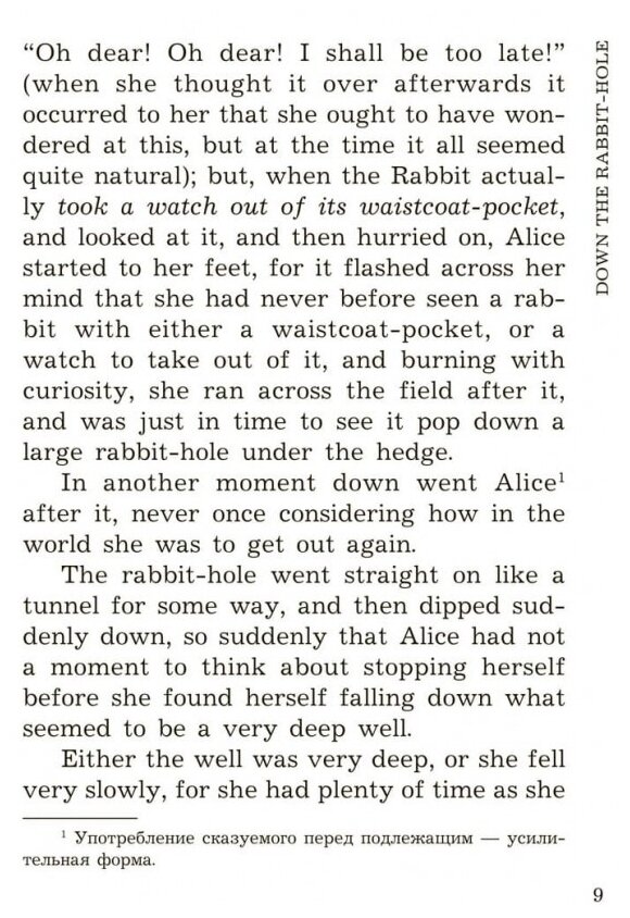 Я не студент ин-яза, довольно скромно говорю по-английски, но мне книга "пошла" хорошо. Страниц десять я прочитала залпом, потом понадобились некоторые вливания из словаря. Но в целом слог очень понятен и, действительно, "Алиса" в оригинале и в переводе всё равно, что свежевыжатый сок против пакетированного.