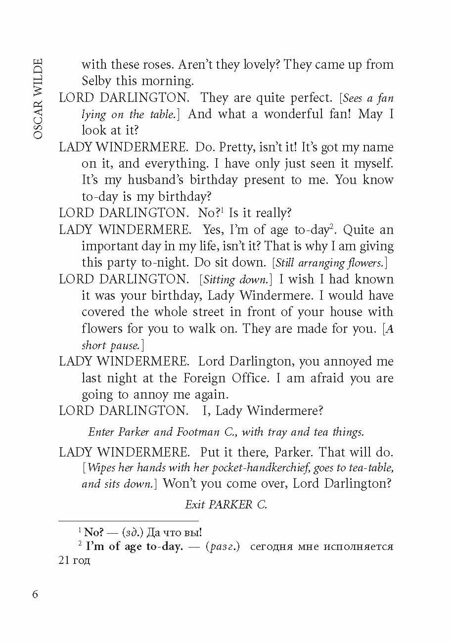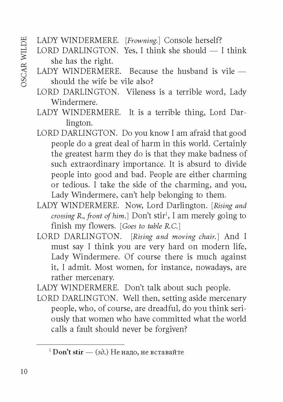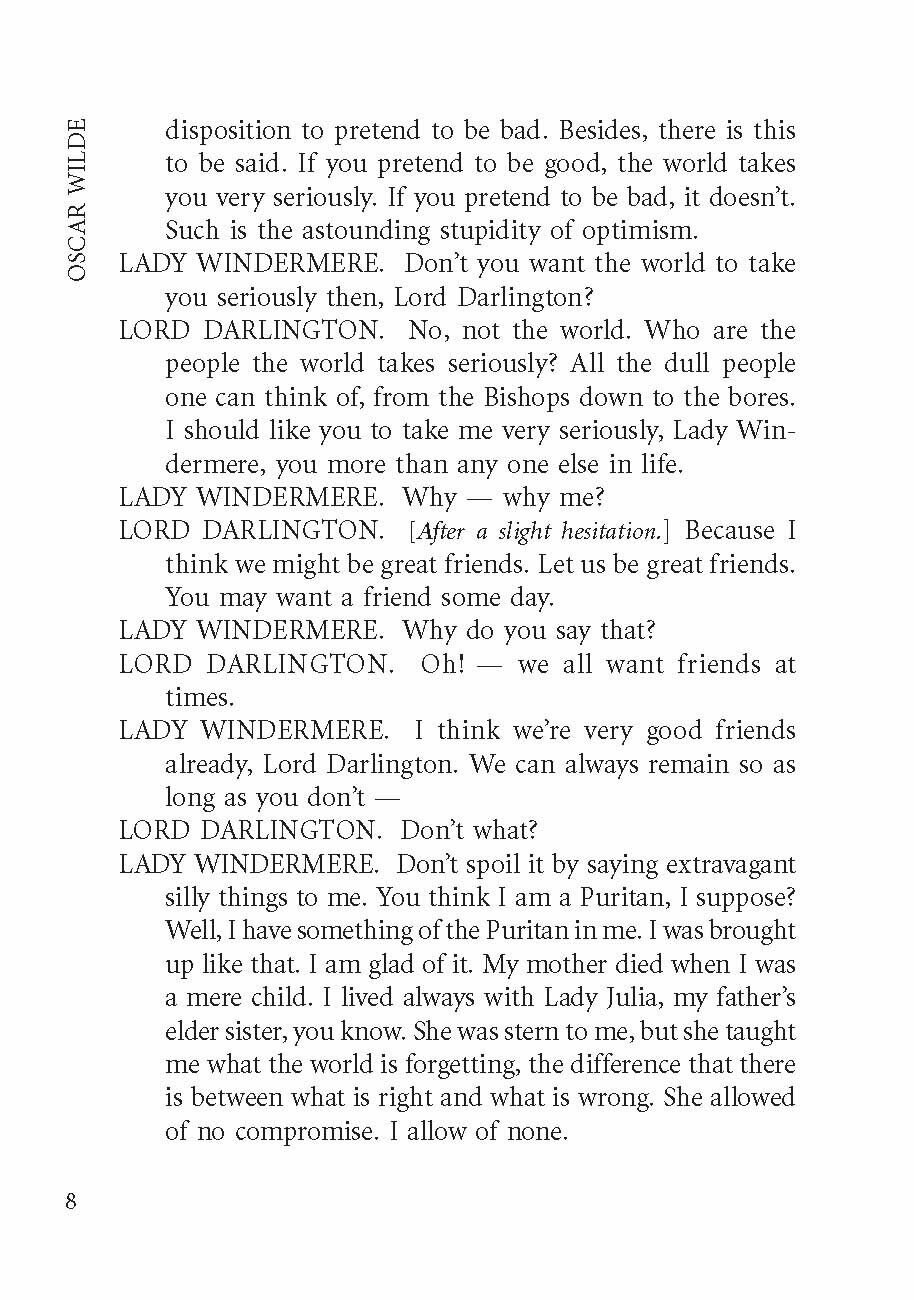 Пьесы Оскара Уайльда гениальны все... Они совершенно восхитительны! Вообще читать именно Оскара Уайльда в оригинале особенно интересно, так как у него полно остроумных афоризмов и высказываний. И прочесть и тщательно изучить его пьесы в оригинале просто необходимо, не говоря уже об изучении английского языка. Забавно, что на обложке книги изображены главные герои из экранизации Оливера Паркера.
