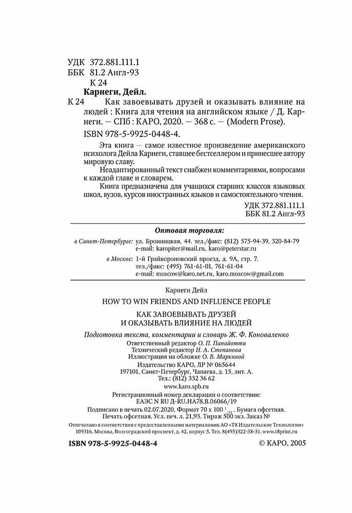 Сервис сравнения цен СкидкаГИД предлагает сравнить цены на товар «Книга: Как завоевать друзей и оказывать влияние на людей: Книга для чтения на английском языке. (Дейл Карнеги); КАРО, 1981»