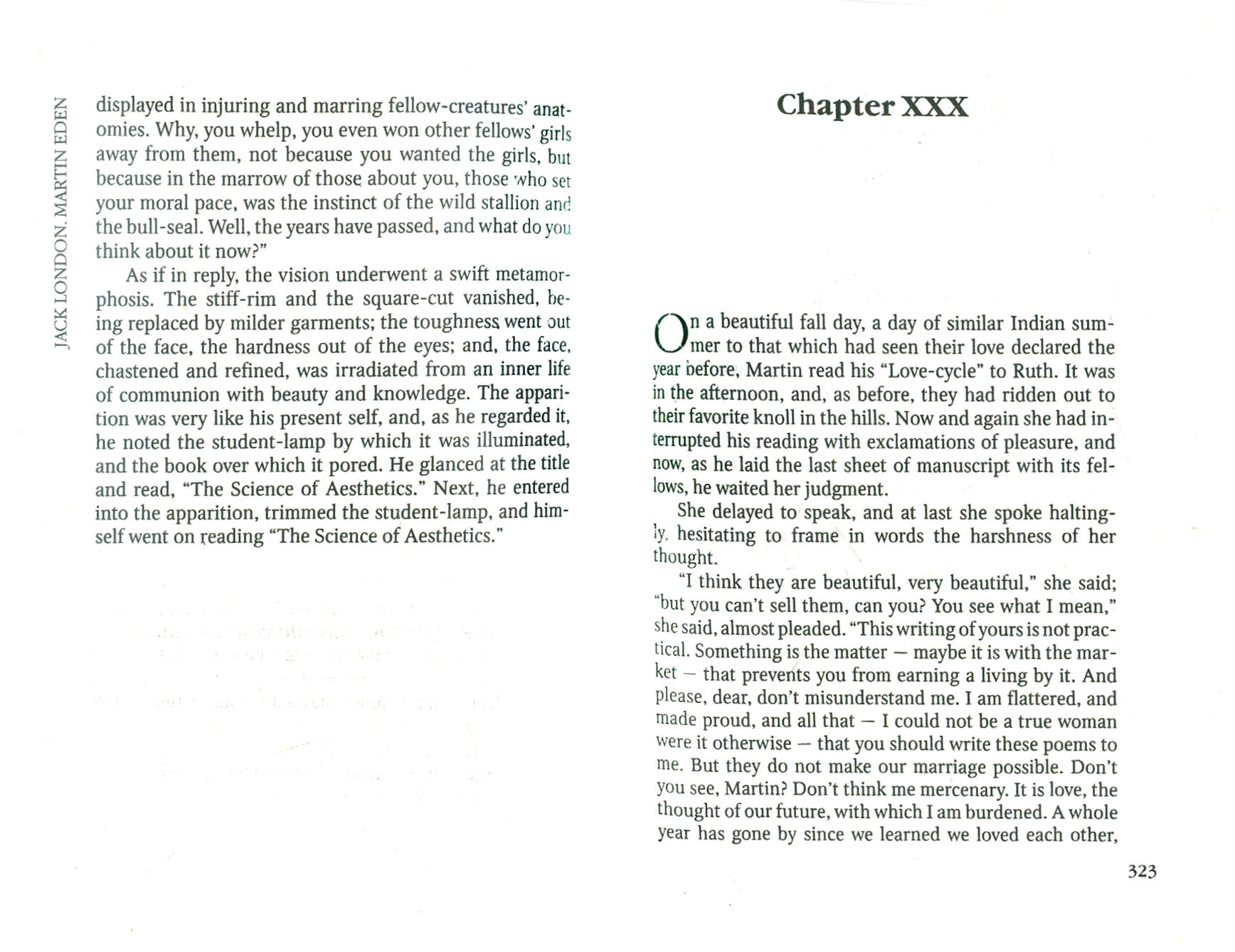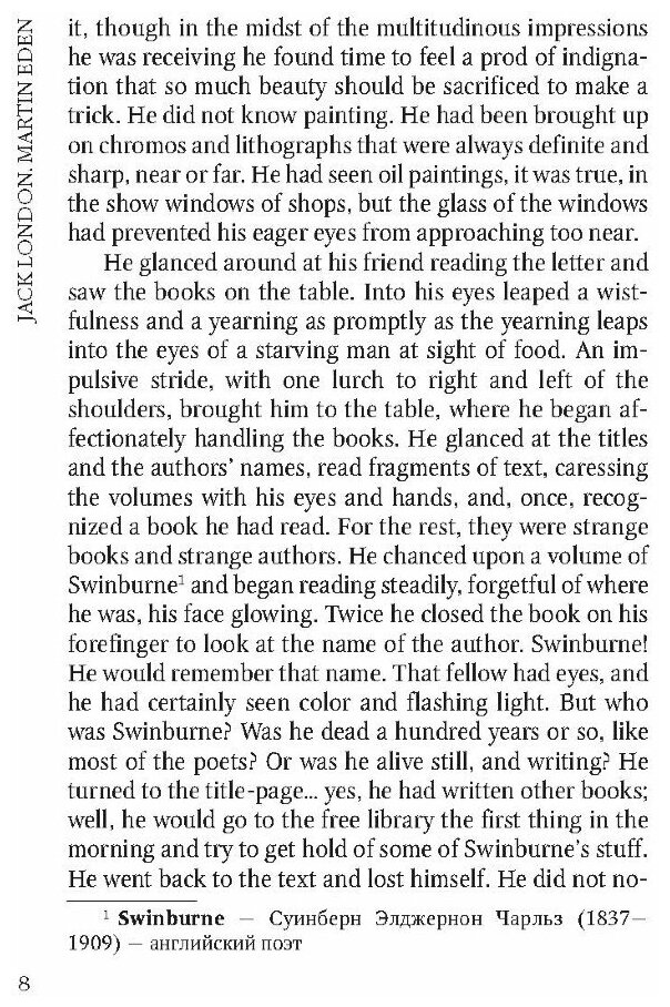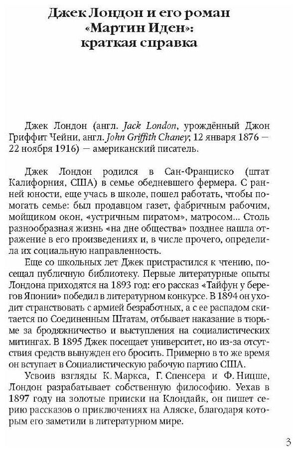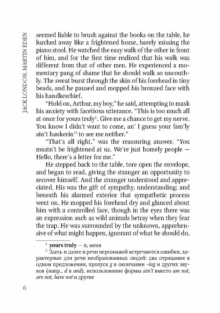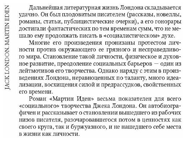 "Мартин Иден"- потрясающая книга . Книга неадаптирована, но практически на каждой странице есть сноски, которые дают перевод сложных выражений, а также, кто читал книгу в переводе, помнят, что речь геройя полна ошибок, так вот все его ошибки также есть в сносках, чтобы понять, что он хотел сказать. И это очень удобно) Книга отлично напечатана, читать очень интересно. Но оригинальный текст довольно сложный, нужно запастись словарями и терпением :) но я думаю, что это того стоит!