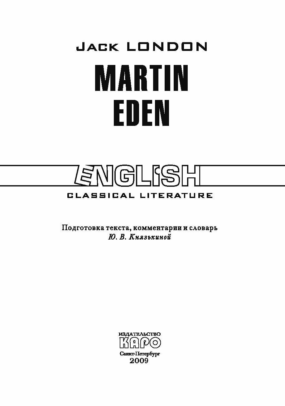 Мартин Иден = Martin Eden: Книга для чтения на английском языке (Джек Лондон); КАРО, 2009