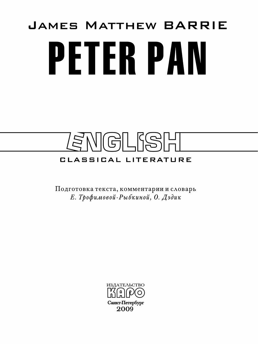 Питер Пэн: Книга для чтения на английском языке. (Джеймс Мэтью Барри); КАРО, 2009