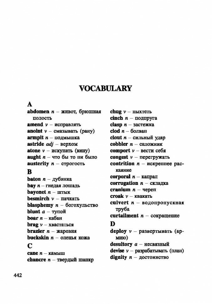 В конце книги расположен словарь (что звучит слишком громко для 4 страниц нескольких десятков английских слов с русским переводом).