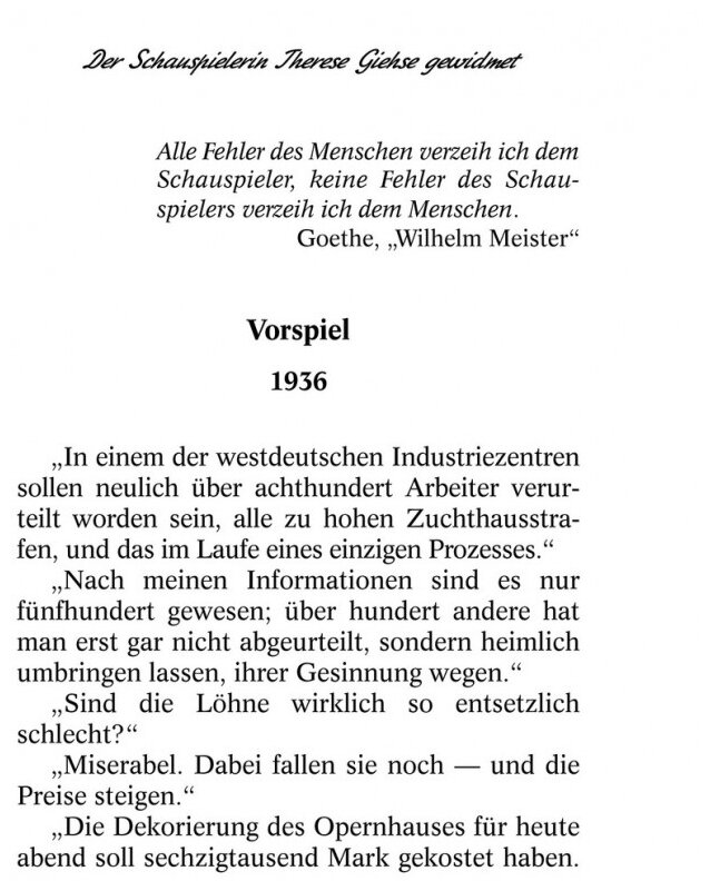 В романе "Mephisto" ("Мефистофель") сатирически трактуется тема "соучастия" людей, не противостоявших фашизму внутри Германии.