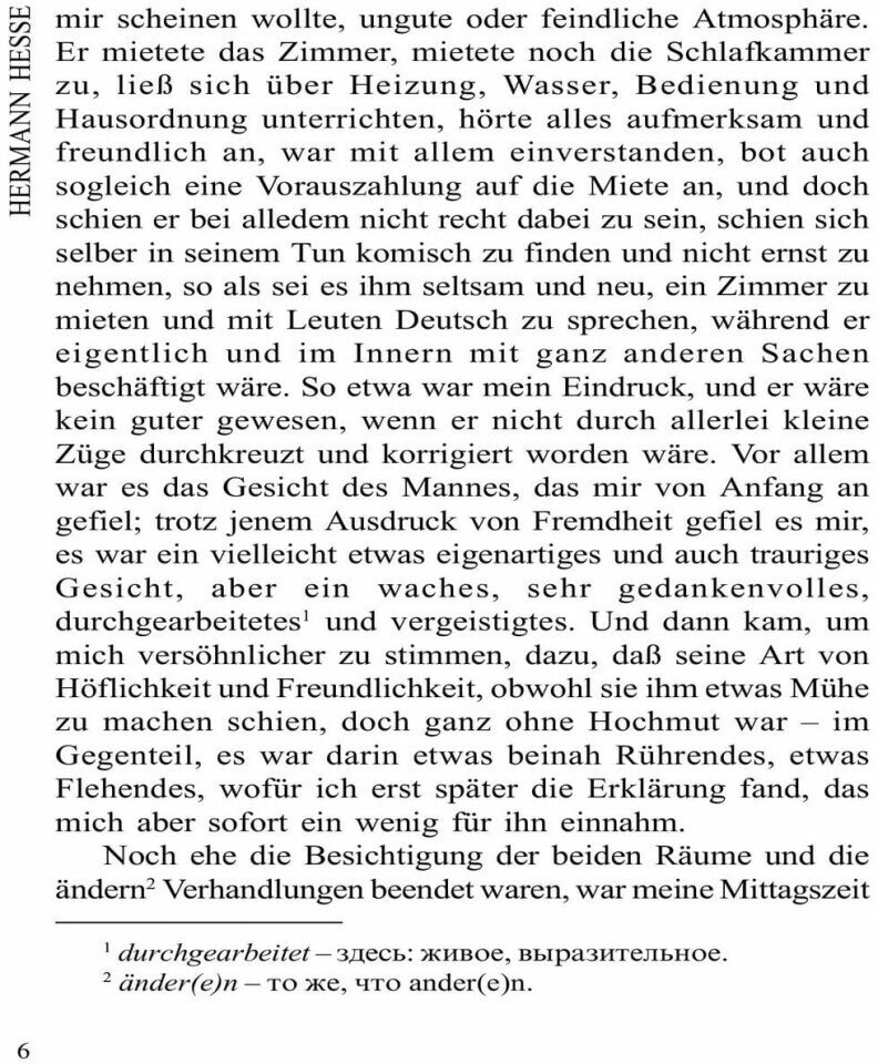 Я думаю, что это чтение для изучающих немецкий язык на высоком уровне (не ниже В2). Текст неадаптированный. Может помочь то, что есть возможность прочитать эту книгу на русском языке для начала, а потом уже перейти к оригиналу. На самом деле, это книга, которую должен прочесть каждый, кто увлекается немецким языком и даже просто зарубежной литературой, потому что это - шедевр, притча во языцех в СССР годах в 70-х, воплощение интеллектуальной философской (даже эстетской) прозы. Чтение непростое (я имею в виду уровень немецкого), но постараться есть смысл. Оно того стоит.