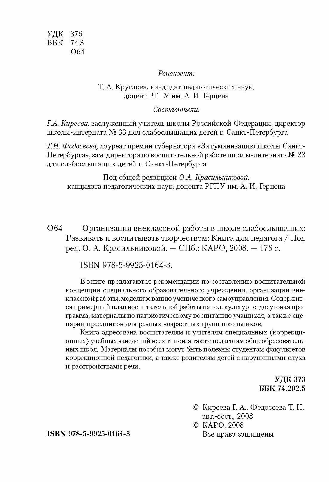 Организация внеклассной работы в школе слабослышащих (Красильникова О.); Каро, 2010