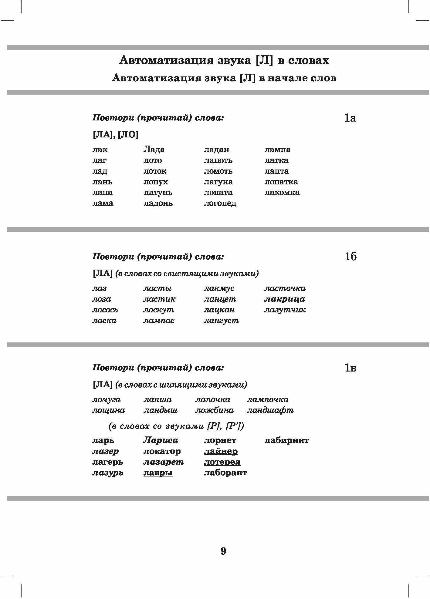 Материал традиционно сгруппирован в зависимости oт позиции автоматизируемого звука в слове, предусматривает сложность слоговой структуры слов, а также наличие тех звуков, которые у детей не вызывают затруднений в произношении.