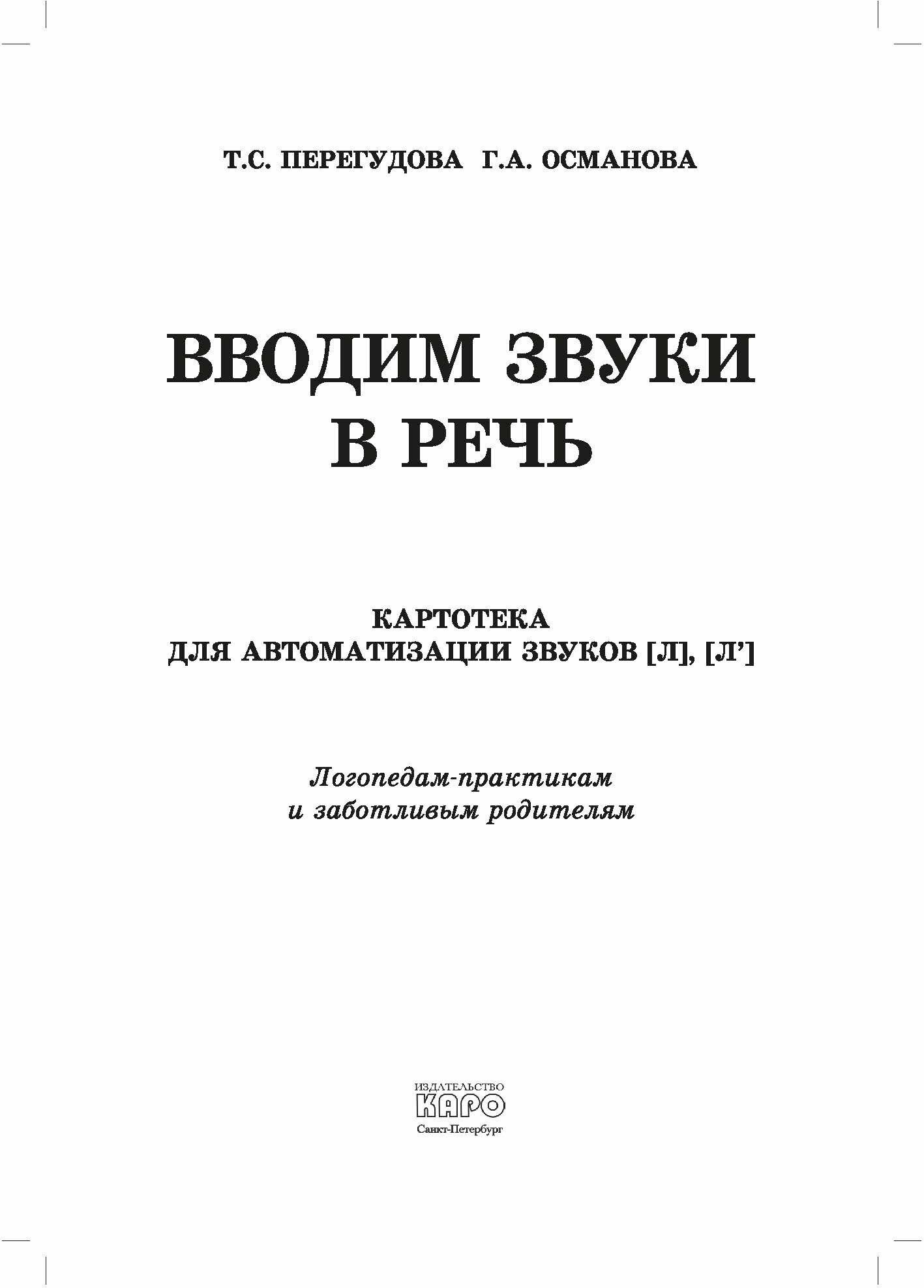 Вводим звуки в речь. Картотека заданий для автоматизации звуков Л Ль (Перегудова Татьяна Сергеевна, Османова Гурия Абдулбарисовна); Каро, 2019
