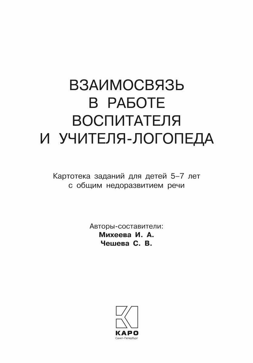 Взаимодействие в работе воспитателя и учителя-логопеда. Картотека заданий для детей 5-7 лет (Ирина Александровна Михеева); КАРО, 2017