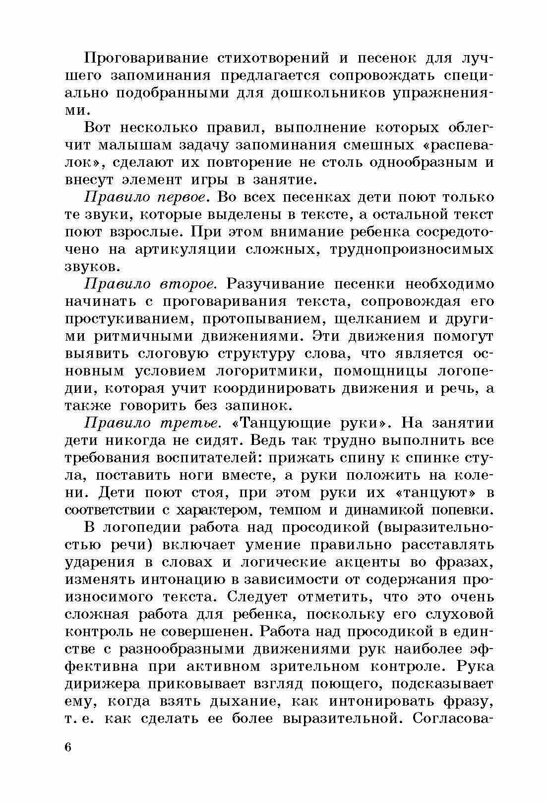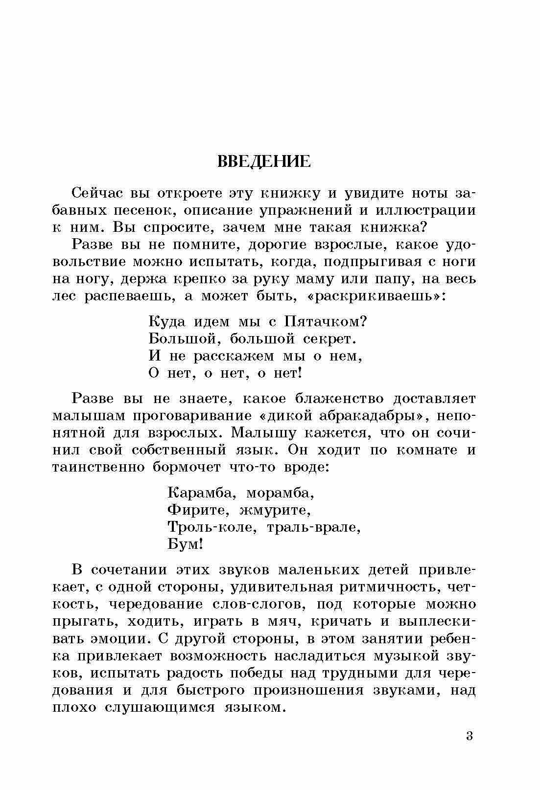 Книга, безусловно, специальная, презначена для детей с недоразвитием речи. Лучше ее покупать в комплекте с диском, на котором представлены распевки. По томй причине, что музыка их довольно специфична - с множеством модуляций, необычными, трудно запоминающимися мелодиями. Детям их разучить и полюбить будет непросто.