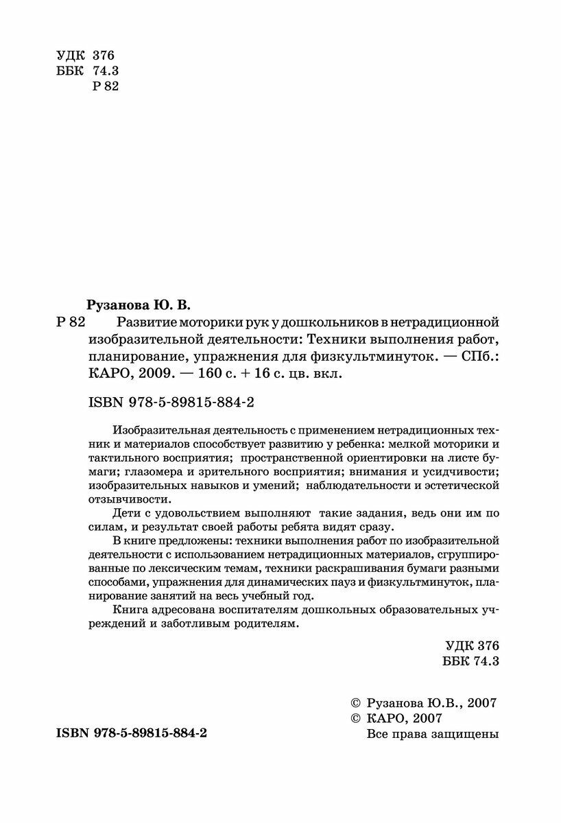 Развитие моторики рук у дошкольников в нетрадиционной изобразительной деятельности (Рузанова Юлия Владимировна); КАРО, 2007