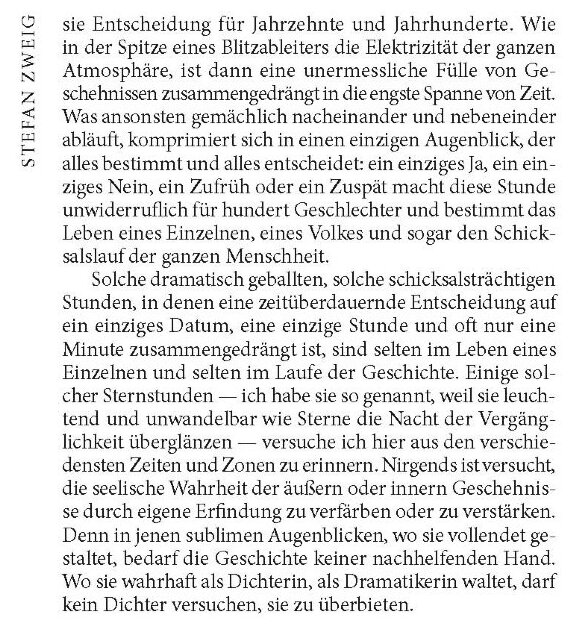 Первая книга Цвейга в моей скромной коллекции. И она захватывающая! Эдакий краткий экскурс по мировой истории. По началу было трудно, так как историческая и приключенческая тематики имеют достаточно специфичную лексику, пришлось пользоваться словарем. Произведение поражает, насколько точно и ярко описаны чувства героев каждого «звездного часа»,что побудило совершить подвиг (или -наоборот-ошибку), и ты тоже чувствуешь себя частью истории: передаешь первое слово через океан, принимаешь решения вместе с офицерами битвы при Ватерлоо, покоряешь Византию вместе с Мехмедом Завоевателем....