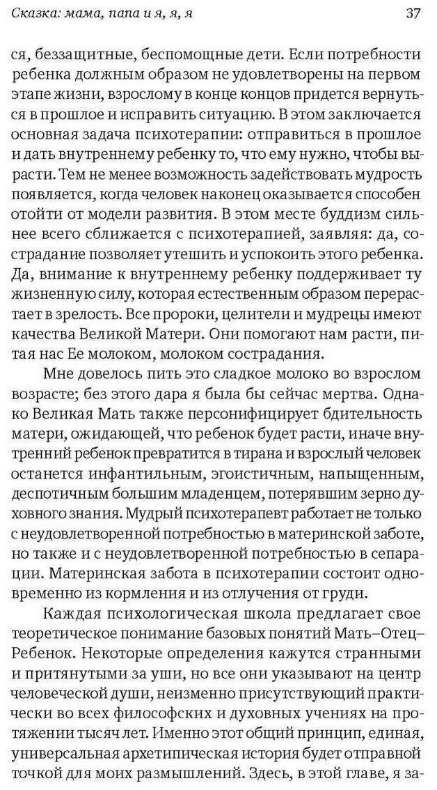 Книга необычайная. Очень полезная. Я рекомендую ее студентам и своим друзьям, практически весь прошлый год эта книга была у меня настольной. Тонко написанная, личностная, задевающая самые глубокие струны души. Показывающая с самых разных ракурсов и аспектов то, что происходит сейчас в социуме с точки зрения юнгианского анализа - с семьей, с нашим обществом, с тем, как в самых разных социальных институтах проявляются Архетипы Матери и Отца, об эмоциональном переохлаждении современных людей... Книга заставляет задуматься, и хочется возвращаться к ней не один раз. Подарила ее своим коллегам и друзьям, и от всех слышала слова благодарности. И даже от студентов, которым рекомендовала ее читать - все говорили, что для них это - книга-открытие, позволившая в том числе более глубоко взглянуть в себя. Очень рекомендую.