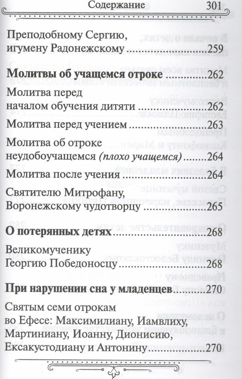 Молитвослов, действительно, семейный! Помимо обыденных молитв, начинающих и завершающих день православного христианина, здесь содержатся молитвы, отражающие все проблемы, возникающие или могущие возникнуть в семье. Вся структура книги такова: