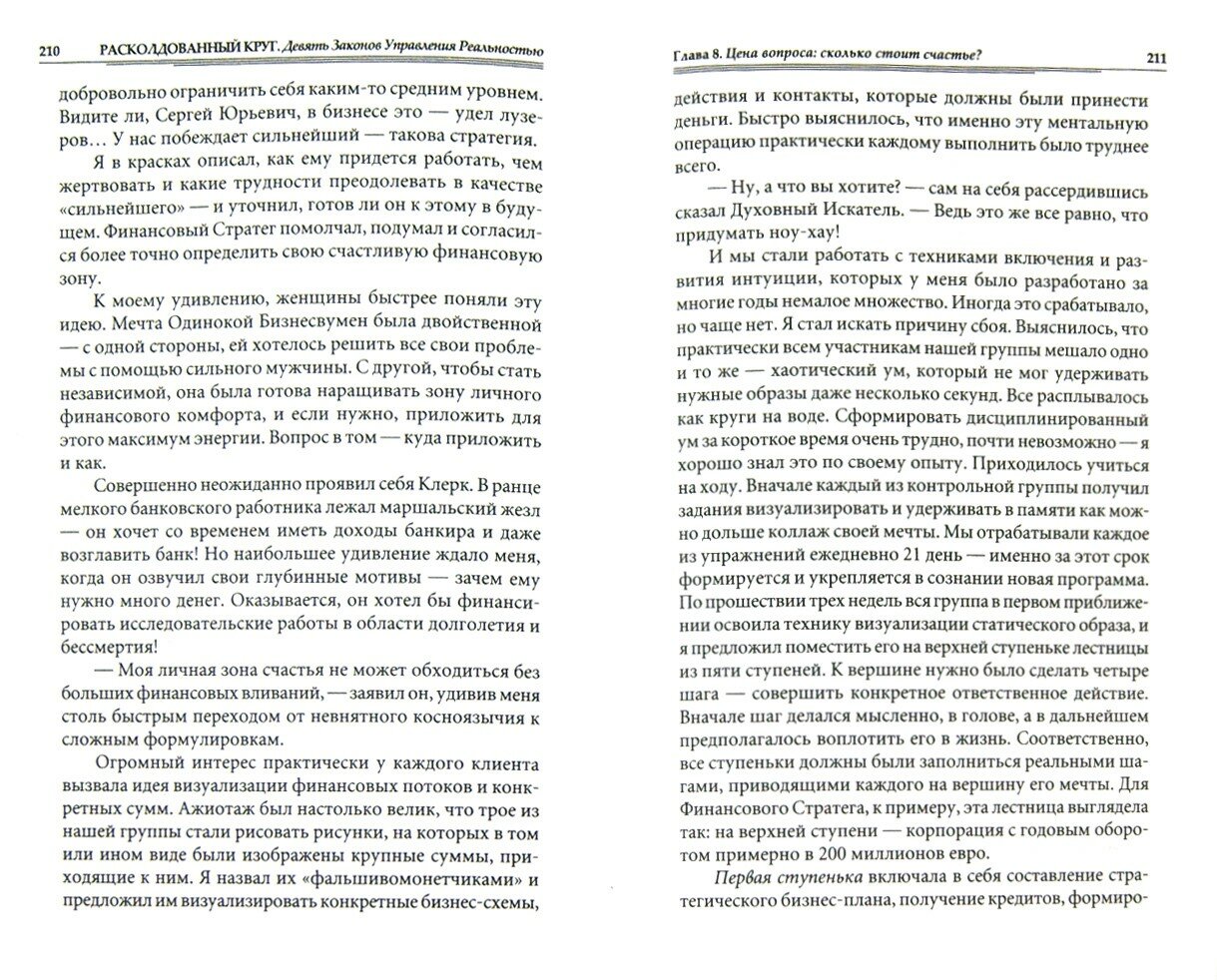 В книге разворачивается увлекательная история поиска автором целостной системы управления реальностью. Свод таинственных формул-законов, полученных автором из неизвестного источника, приводит его к встречам с восточными и западными мастерами из мировых центров, много лет занимающихся подготовкой к мировому кризису, изучением будущего и ускоренной эволюцией человеческого сознания. Автор с учениками оказываются участниками интереснейшего эксперимента, помогающего им совершить прорыв в Новую Реальность. Особую увлекательность книге придает почти детективный сюжет искания тайны, борьба позитивно настроенных групп людей и центров с так называемыми альтернативными или негативными центрами.