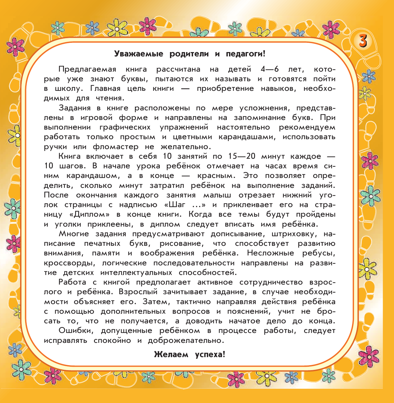 Все задания расположены по мере усложнения и представлены в игровой форме. С помощью таких заданий, как дописывание, штриховка, написание печатных букв, развиваются не только навыки письма, но и внимание, память, воображение. Несложные ребусы и кроссворды направлены на развитие умственных способностей ребенка. А проверочный тест поможет взрослому оценить уровень знаний ребенка. Пособие учитывает возрастные особенности старших дошкольников и позволит родителям и педагогам более эффективно подготовить их к школе.