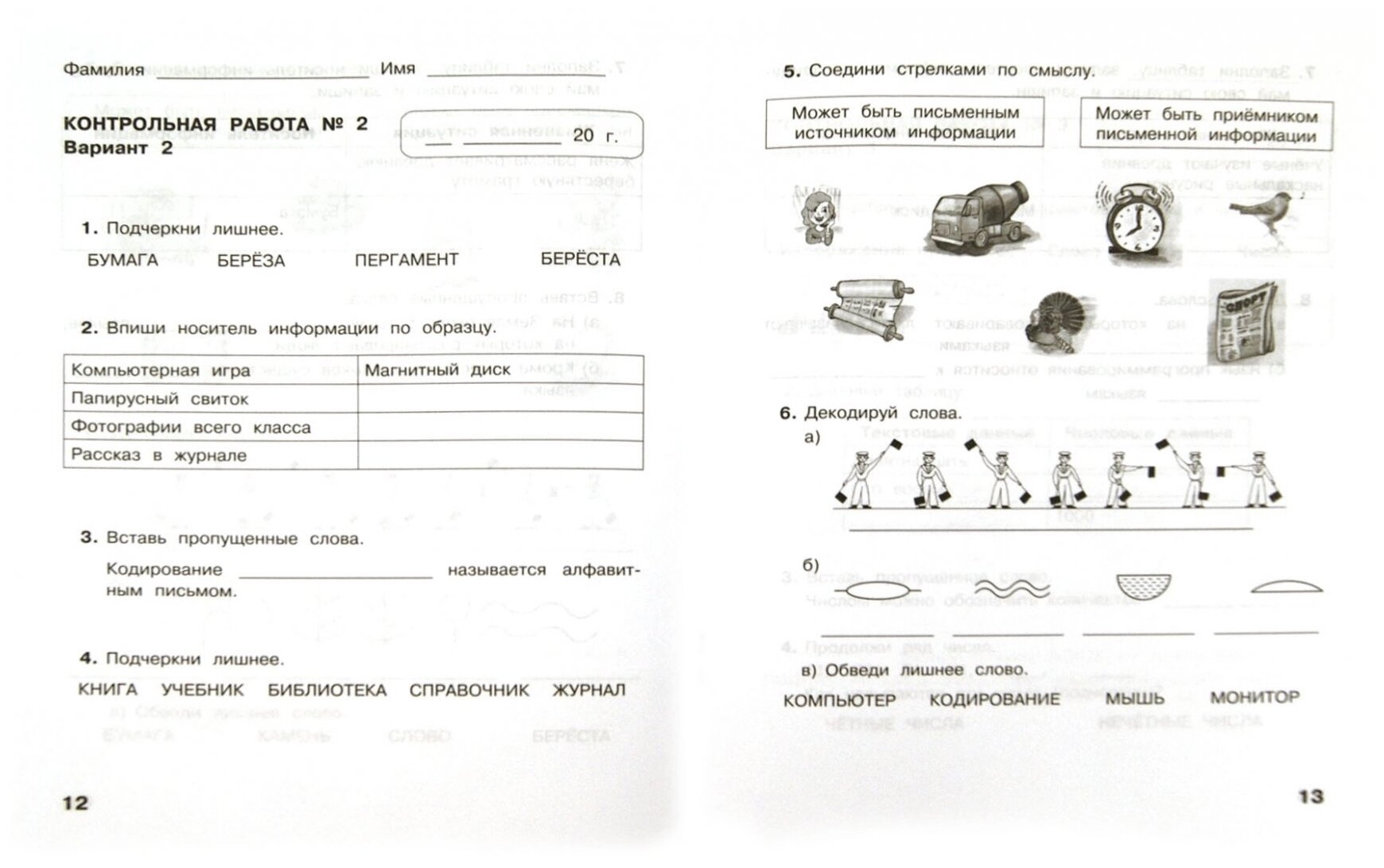 Контрольные работы для 2 класса входят в состав УМК по информатике для начальной школы (2-4 классы). УМК для каждого класса также включает учебник, рабочие тетради, методическое пособие для учителя, электронное приложение.
