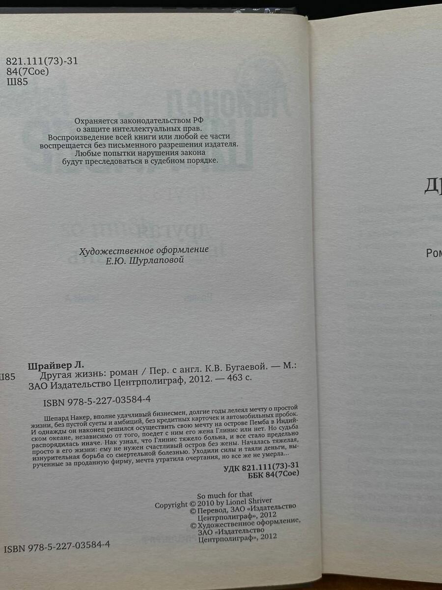 Книга: Другая жизнь (Лайонел Шрайвер); Центрполиграф, 2010