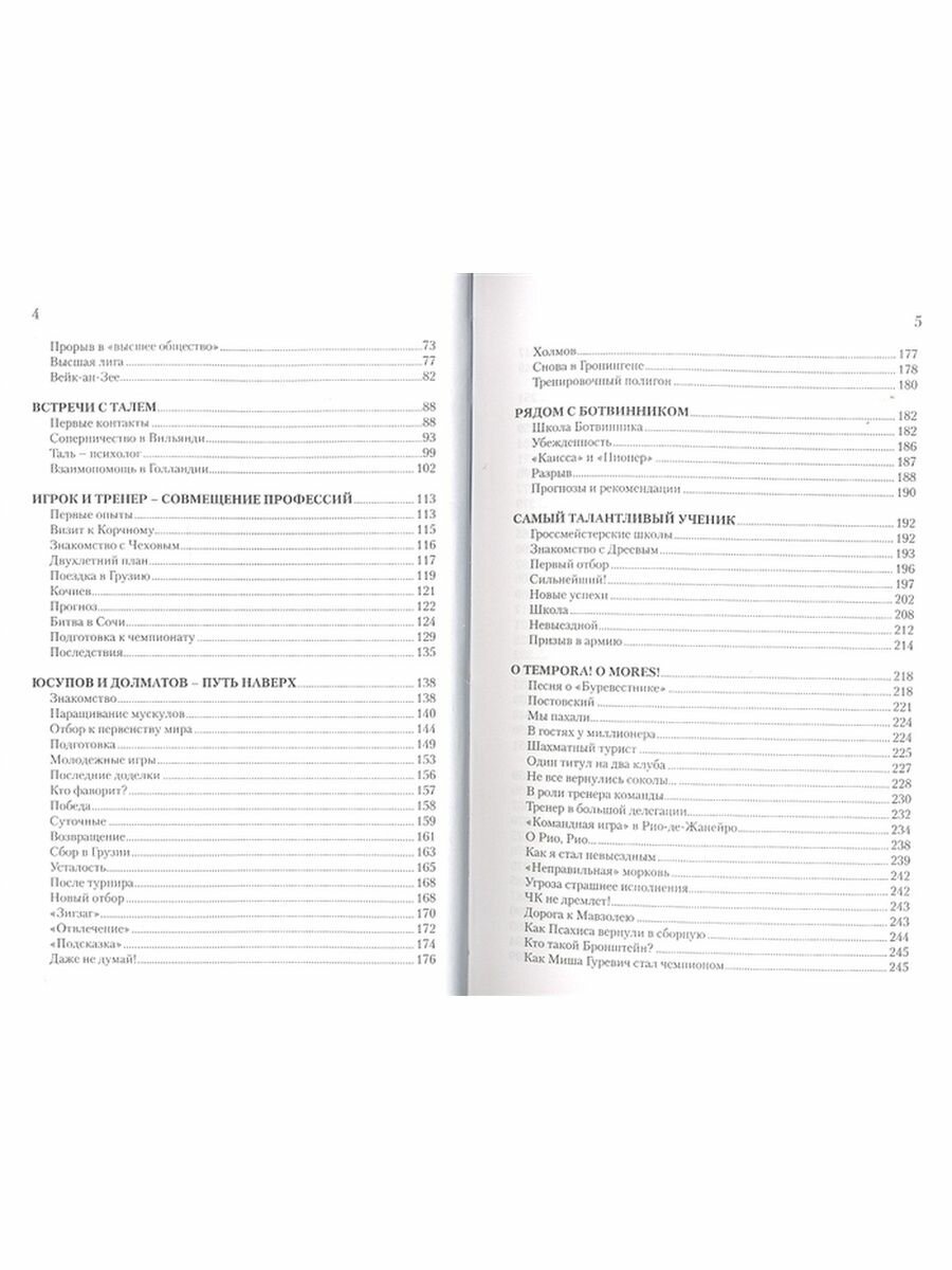 .Биографическая книга заслуженного тренера СССР, России и Грузии состоит из двух частей. Первая - мемуарная, но это не биография в чистом виде. Выводы, вытекавшие из тех или иных жизненных коллизий, автор осмысливал и использовал в занятиях с учениками, самые известные и успешные из которых - Артур Юсупов, Сергей Долматов, Нана Александрия, Алексей Дреев, Вадим Звягинцев, Александр Рязанцев, Виорел Бологан, Эрнесто Инаркиев. Рассказ проиллюстрирован шахматными примерами, причем большинство из них можно использовать в качестве учебного материала. Также в книгу включено немало забавных историй из жизни автора и других известных шахматистов.