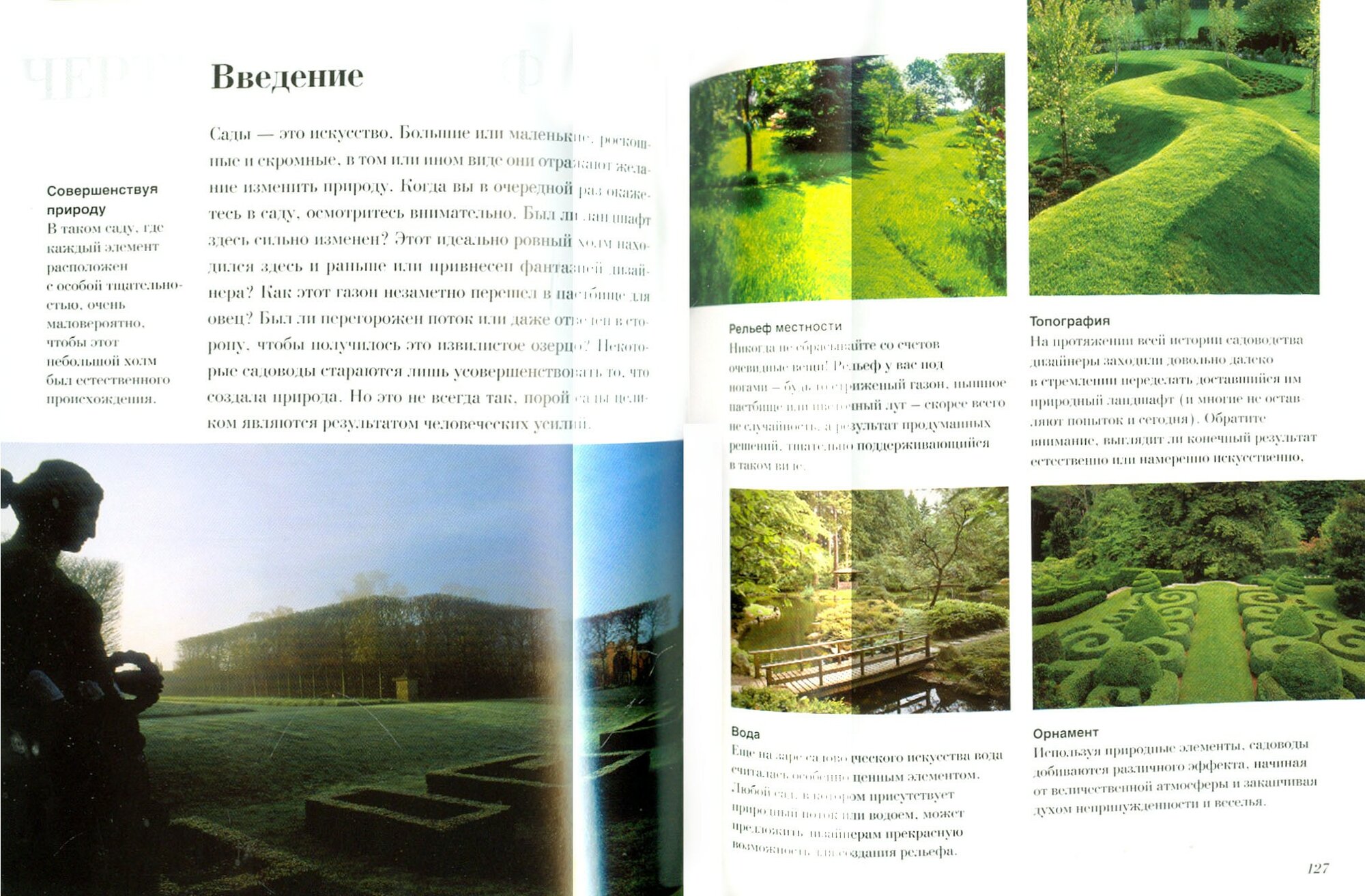 Что до содержания, то и его очень мало. Базовые вещи (вроде планировки исламских садов или периода популярности партеров) изложены скупо и неинтересно, иллюстративный материал в большинстве своем ограничен английскими садами, и растения упоминаются соответственно только такие, которые можно встретить на Туманном Альбионе. Символизм восточных (китайских, японских) садов упоминается, но не раскрывается. Большая часть книги содержит текст вроде "а ещё в садах вы можете встретить (деревья, цветы, фонтаны, дорожки, беседки, вазоны, урны, рокарии, рабочие строения - нужное подчеркнуть) и они бывают весьма разнообразны". -