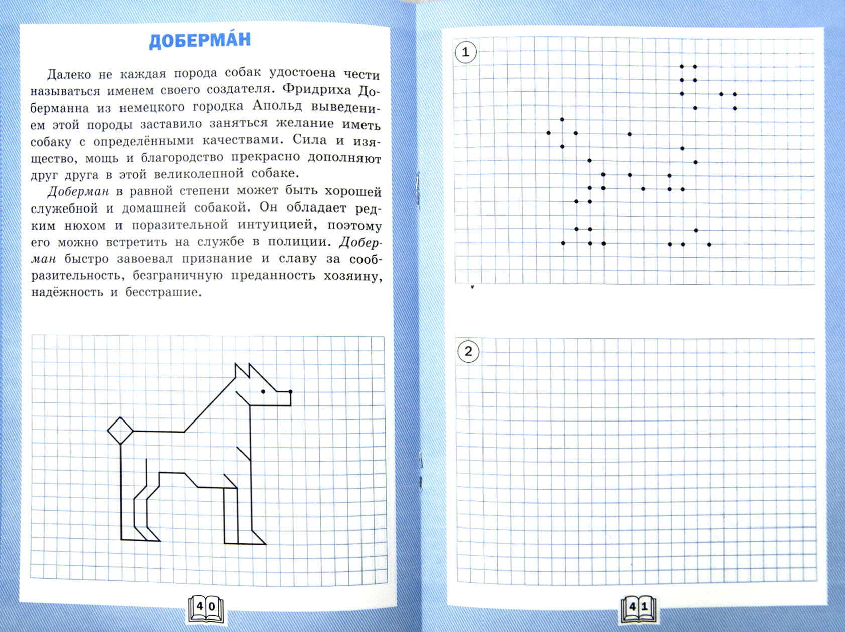 Рисование по клеточкам - очень увлекательное и полезное занятие для детей. Это игровой способ развития у ребенка пространственного воображения, мелкой моторики пальцев рук, логического мышления, глазомера, координации движений, усидчивости. Выполняя задания, ребенок научится ориентироваться в клеточном пространстве, расширит кругозор, увеличит словарный запас. Данные упражнения могут с успехом применяться для обучения детей от 5 до 9 лет.