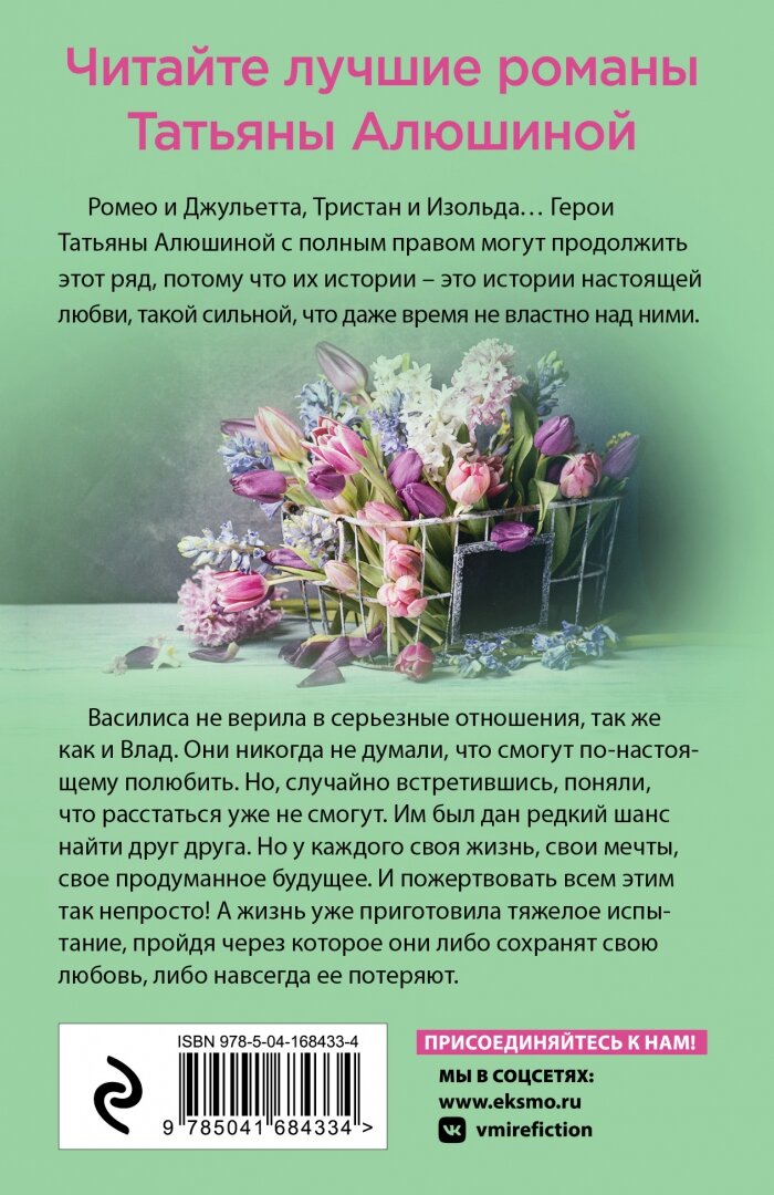 Василиса не верила в серьезные отношения, так же, как и Влад. Они никогда не думали, что смогут по-настоящему полюбить. Но, случайно встретившись, поняли, что расстаться уже не смогут. Им был дан редкий шанс найти друг друга. Но у каждого своя жизнь, свои мечты, свое продуманное будущее. И пожертвовать всем этим так непросто! А жизнь уже приготовила тяжелое испытание, пройдя через которое они либо сохранят свою любовь, либо навсегда ее потеряют.