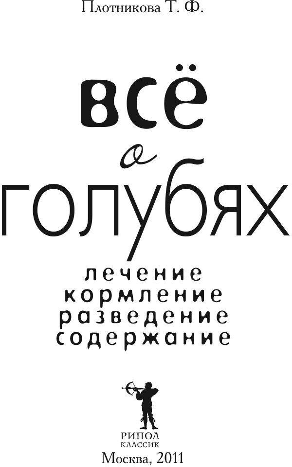 Все о голубях. Лечение кормление разведение содержание (Плотникова Татьяна Федоровна); Рипол-Классик, 2011
