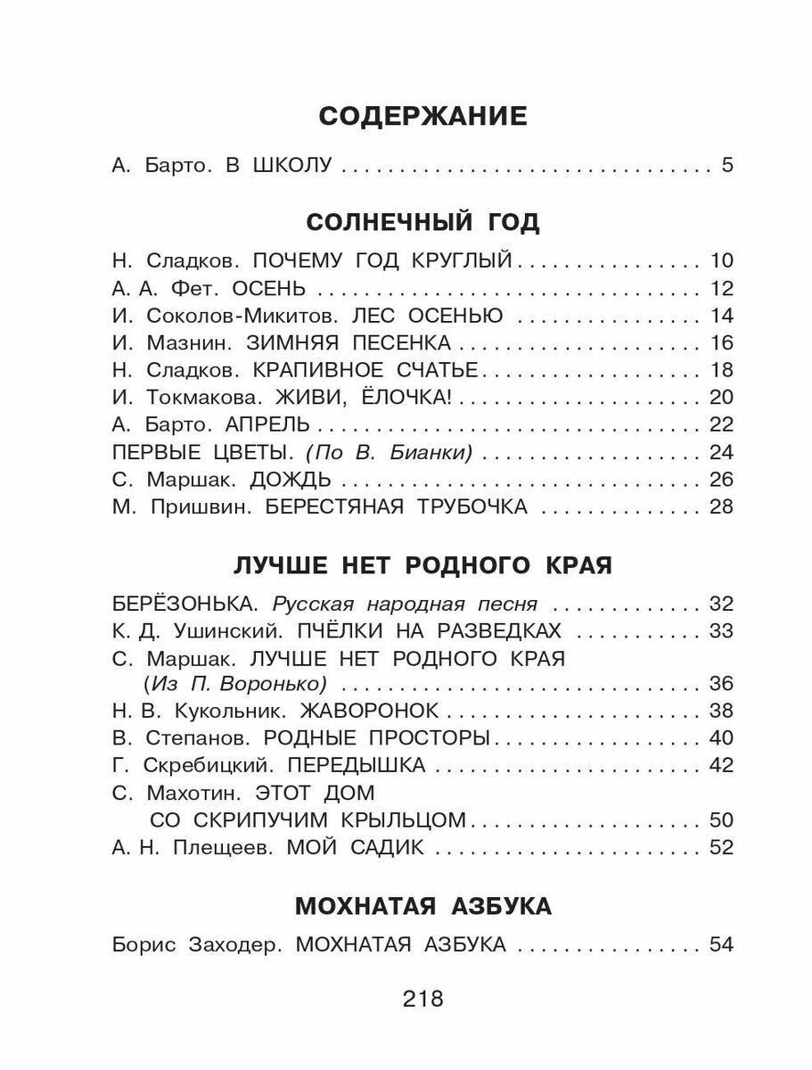 | Автор(ы) | Барто Агния Львовна, Маршак Самуил Яковлевич, Токмакова Ирина Петровна, Пришвин Михаил Михайлович, Заходер Борис Владимирович, Паустовский Константин Георгиевич |