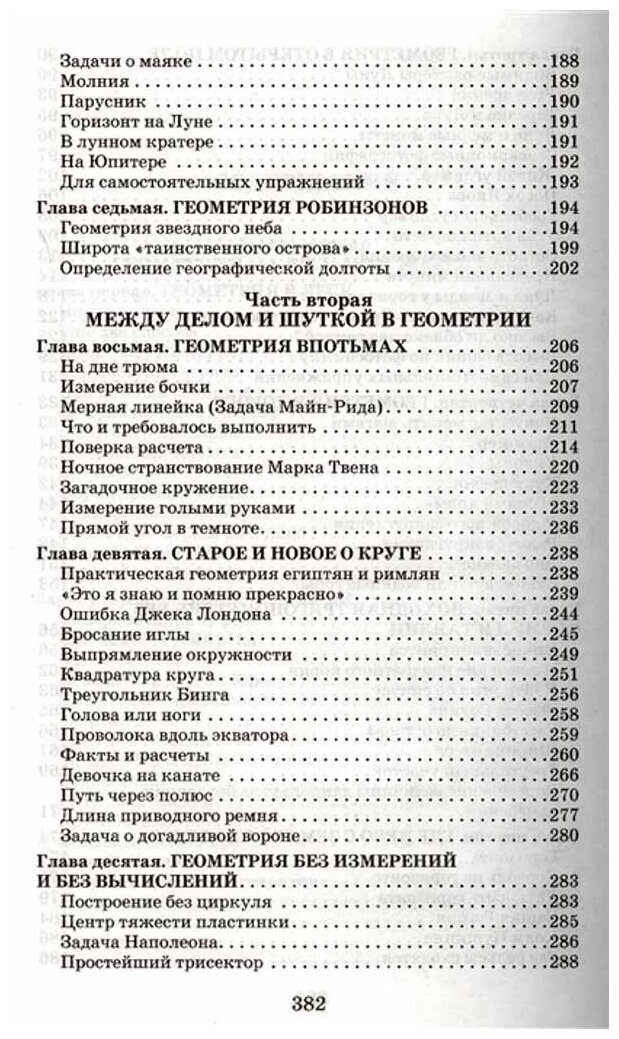Есть в книге и сугубо математические задачи: как вычислить приблизительное значение квадратного корня, как разделить угол на три равные части - и все это написано очень просто и увлекательно, опять же в отличие от современных учебников.