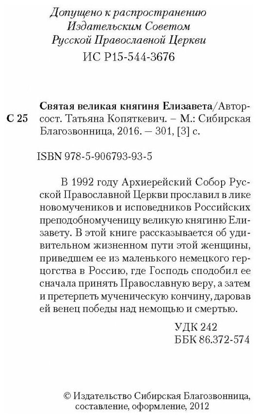 Сервис сравнения цен СкидкаГИД предлагает сравнить цены на товар «Книга: Святая великая княгиня Елизавета (Татьяна А. Копяткевич); Сибирская Благозвонница, 2015»