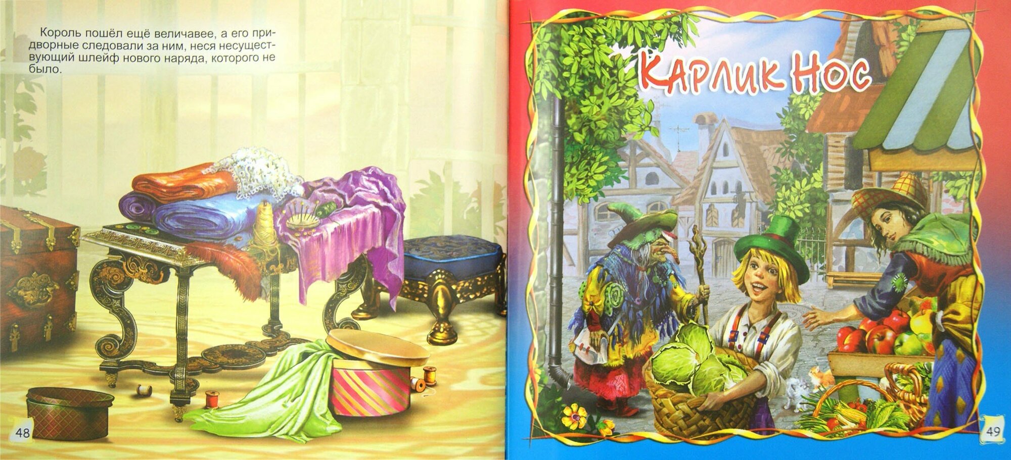 При заказе это книги привлекли яркие иллюстрации, но при более детальном просмотре было разочарование. Во-первых лица большинства героев достаточно некрасивые (даже у положительных). Так в сказке "Принц-лягушонок" принцесса,которая по сказке красавица, с перекошенным лицом. В сказке "карлик-нос" герой понятно, что должен быть с большим носом, но он почему-то в жутких бородавках, дочка поначалу его очень пугалась. Ребенку нравится большое количеством картинок,но чаще они отвлекают от самой сказки, в следующий раз буду покупать книги с меньшим количеством иллюстраций и с не сокращенным текстом.