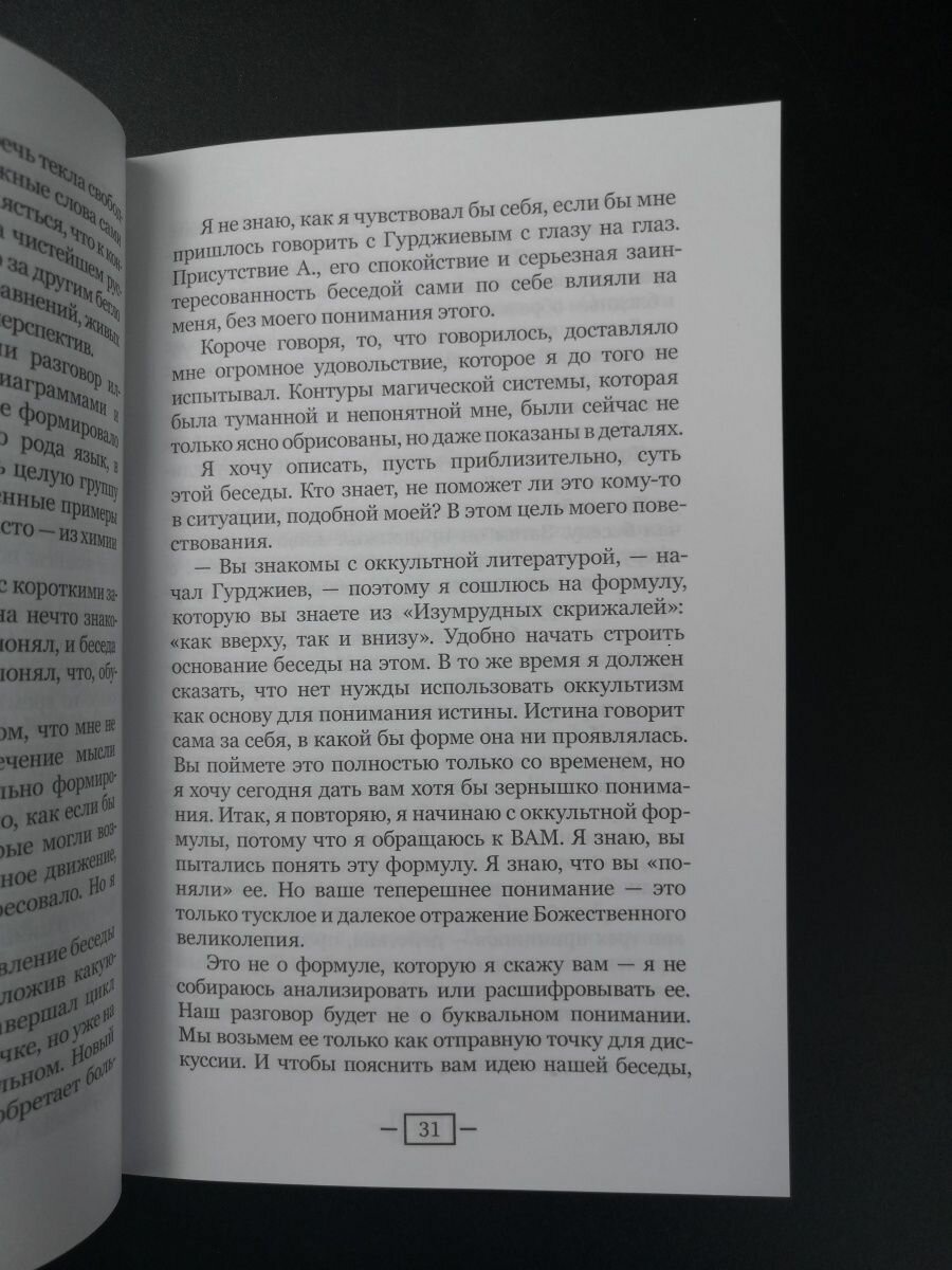 Книга продолжает серию книг из цикла Беседы с учениками. Интересна тем, что здесь сами ученики делятся своими встречами с Гурджиевым, описывая его самого: характер, внешний вид и конечно то впечатление, которое он на них производил. Также есть опыты и практика, которую мастер преподавал своим ученикам, читается легко и интересно.