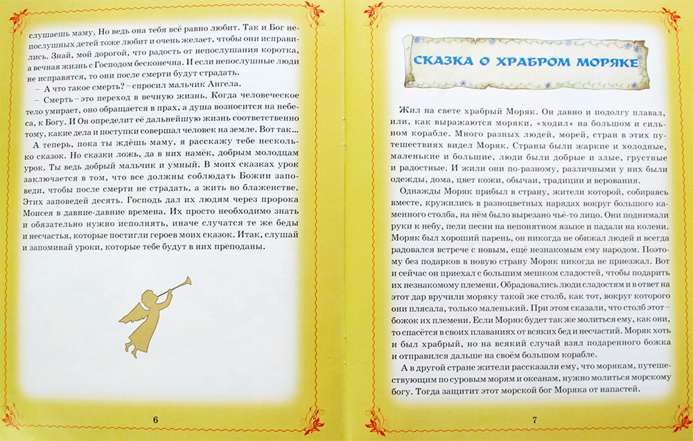Замечательная книга! В необычной форме рассказывается про десять Божьих заповедей (десять тематических сказок, рассказанных Ангелом -Хранителем мальчику). Дети не очень любят книги, где о Боге говорится в лоб. А в этой книге все так тонко, умело, я бы даже сказала деликатно. :-) Спасибо автору! Рекомендую. В домашнюю библиотеку и как символический подарок на религиозные праздники.