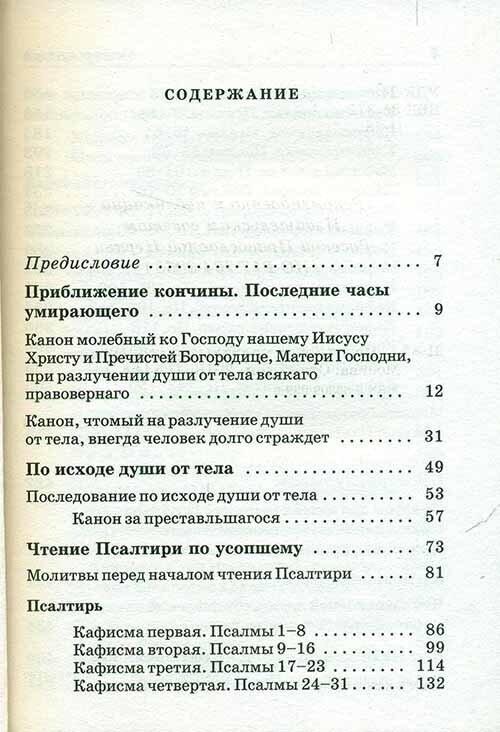 Одно из лучших изданий Псалтыри и молитв по усопшим. В книгу вошли каноны, чтомые при приближении кончины, по исходе души, за умерших без крещения, без покаяния, псалтирь, заупокойная лития и др.