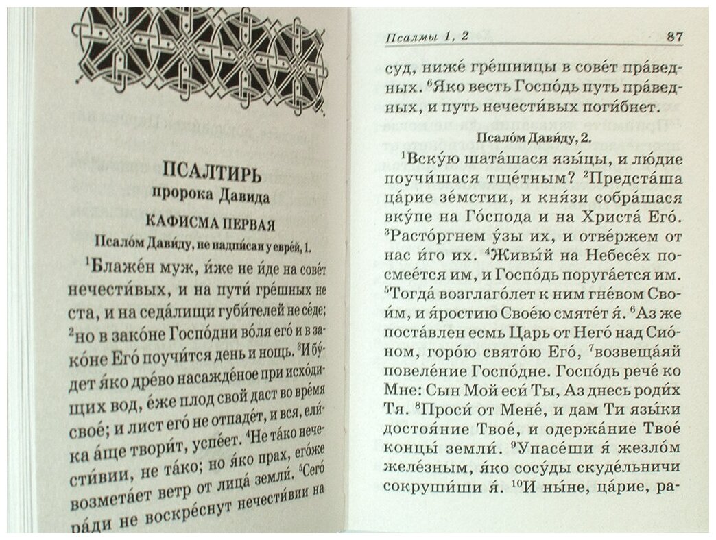 Здесь не только псалтирь и молитвы , но и написано о том,как молится за умерших, о псалтыри, о погребении и поминовении. Есть полезный словарь объяснений из псалмов и молитв.