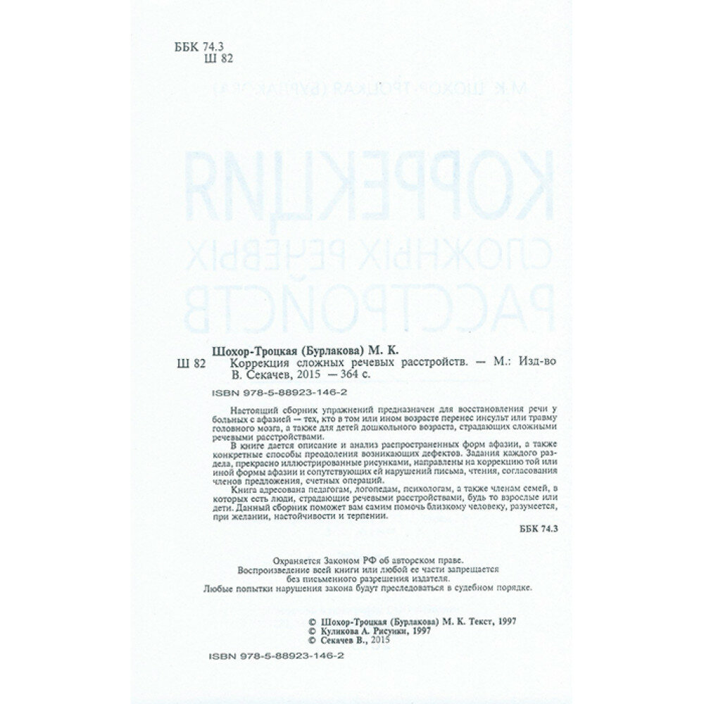 Коррекция сложных речевых расстройств. Сборник упражнений (Шохор-Троцкая (Бурлакова) Марианна Константиновна); Секачев, 2018
