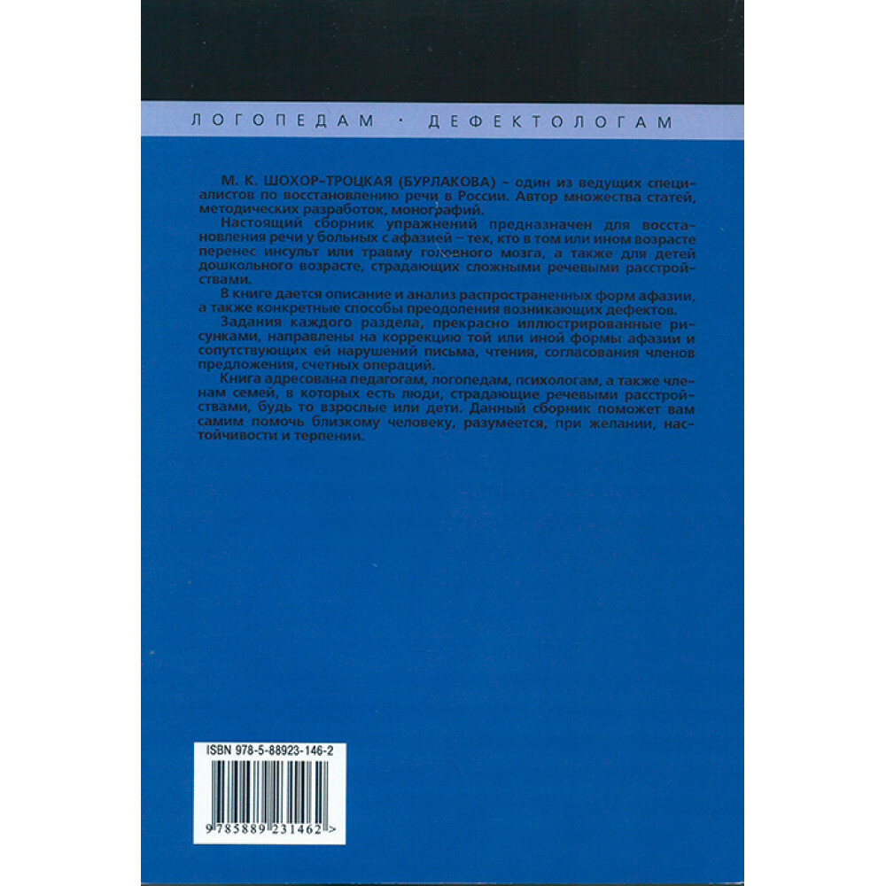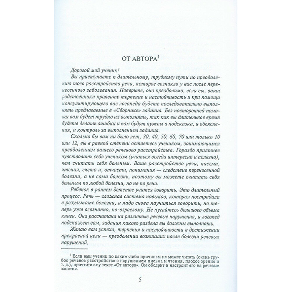Настоящий сборник упражнений предназначен для восстановления речи у больных с афазией - тех, кто в том или ином возрасте перенес инсульт или травму головного мозга, а также для детей дошкольного и младшего школьного возраста, страдающих сложными речевыми расстройствами.