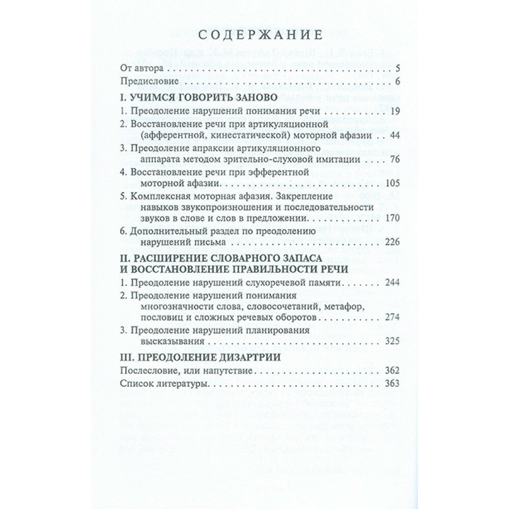 В книге дается описание и анализ распространенных форм афазии, а также конкретные способы преодоления возникающих дефектов. Задания каждого раздела, прекрасно иллюстрированные рисунками, направлены на коррекцию той или иной формы афазии и сопутствующих ей нарушений письма, чтения, согласования членов предложения, счетных операций.