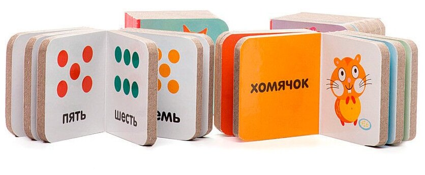 Что понравилось: красивые картинки, понятные, ребенку купили почти на годик, сейчас 1.4, с удовольствием сама достает, листает. Особое удовольствие - выкладывать и засовывать книжечки из коробки) Ничего не порвали и не съели, хотя дочка любит это дело. Переплет выглядит тонким, но оказался довольно прочным.