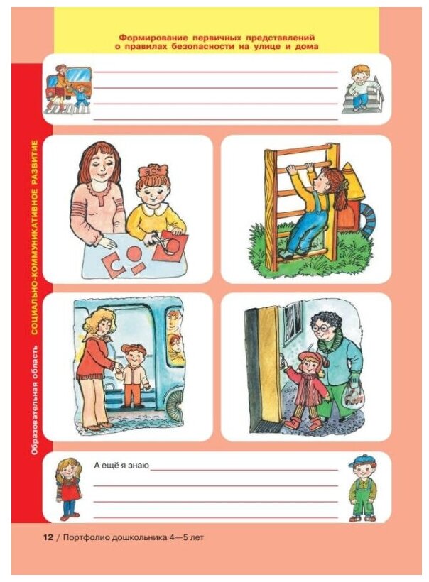 Прекрасное пособие.Приобретала портфолио 4-5,а затем 5-7лет.В портфолио видна работа воспитателя и родителей,так как первые страницы заполняются родителями.Туда заносятся успехи ребенка в различных видах деятельности.,имеется карманчик для грамот ,наград полученных ребенком.Есть страничка,где ребенок сам рисует в портфолио.Если эти портфолио передать учителю 1 класса,где будет учиться ребенок,то учитель сможет по портфолио увидеть личность ребенка.